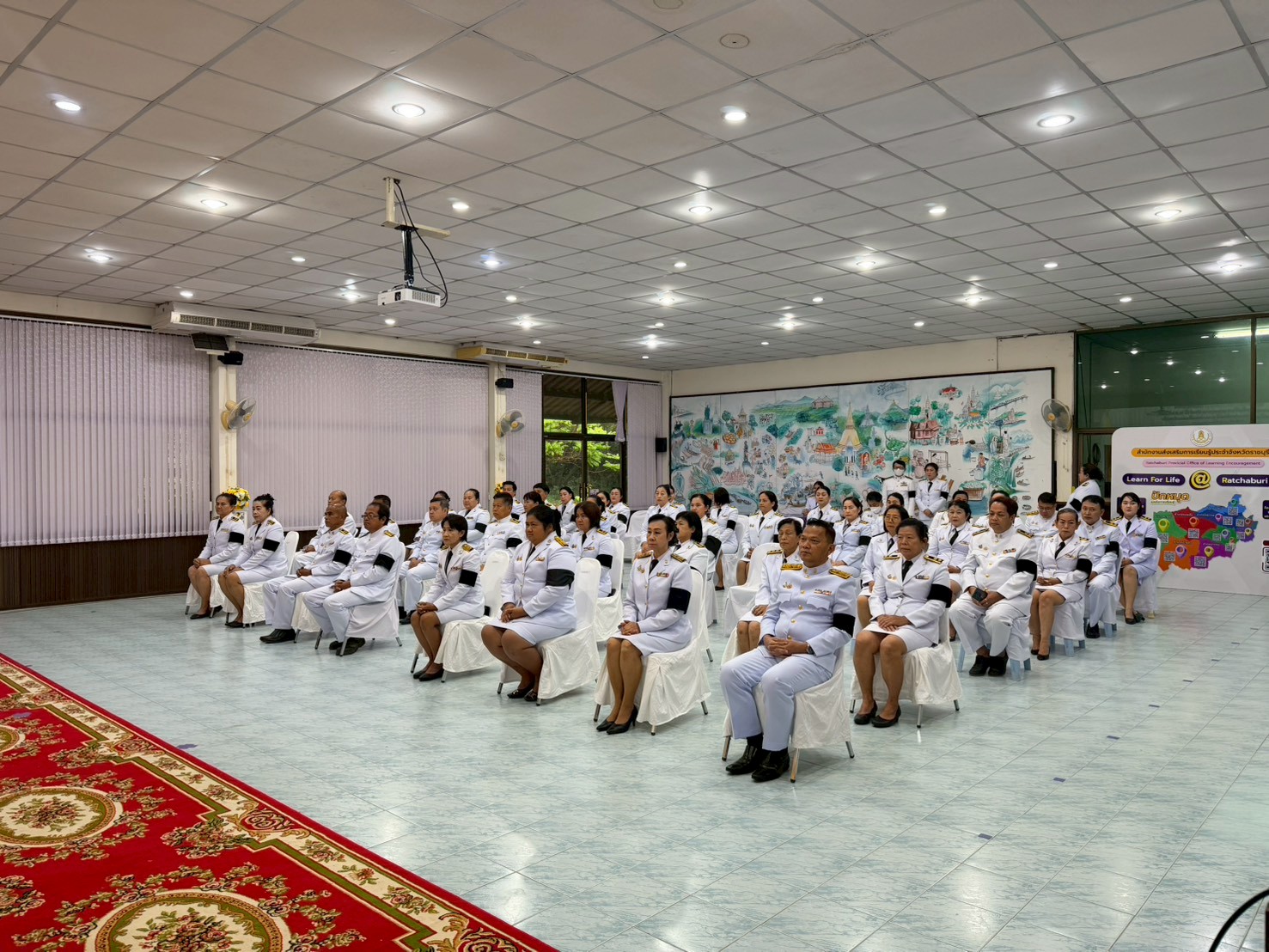 วันที่ ๑๒ ธันวาคม ๒๕๖๘ ดร.อัญชลี ปสันตา ผู้อำนวยการสำนักงานส่งเสริมการเรียนรู้ประจำจังหวัดราชบุรี เป็นประธานอัญเชิญเครื่องราชอิสริยาภรณ์ ชั้นสายสะพายและชั้นต่ำกว่าสายสะพาย ประจำปี พ.ศ.๒๕๖๕ - ๒๕๖๗ เบื้องหน้าพระบรมฉายาลักษณ์ พระบาทสมเด็จพระเจ้าอยู่หัว โดยมีผู้บริหารการศึกษา ผู้บริหารสถานศึกษา ข้าราชการครูและบุคลากรทางการศึกษา เข้าร่วมในพิธีฯ ณ ห้องประชุมชิต ชิตชูตระกูล สำนักงานส่งเสริมการเรียนรู้ประจำจังหวัดราชบุรี