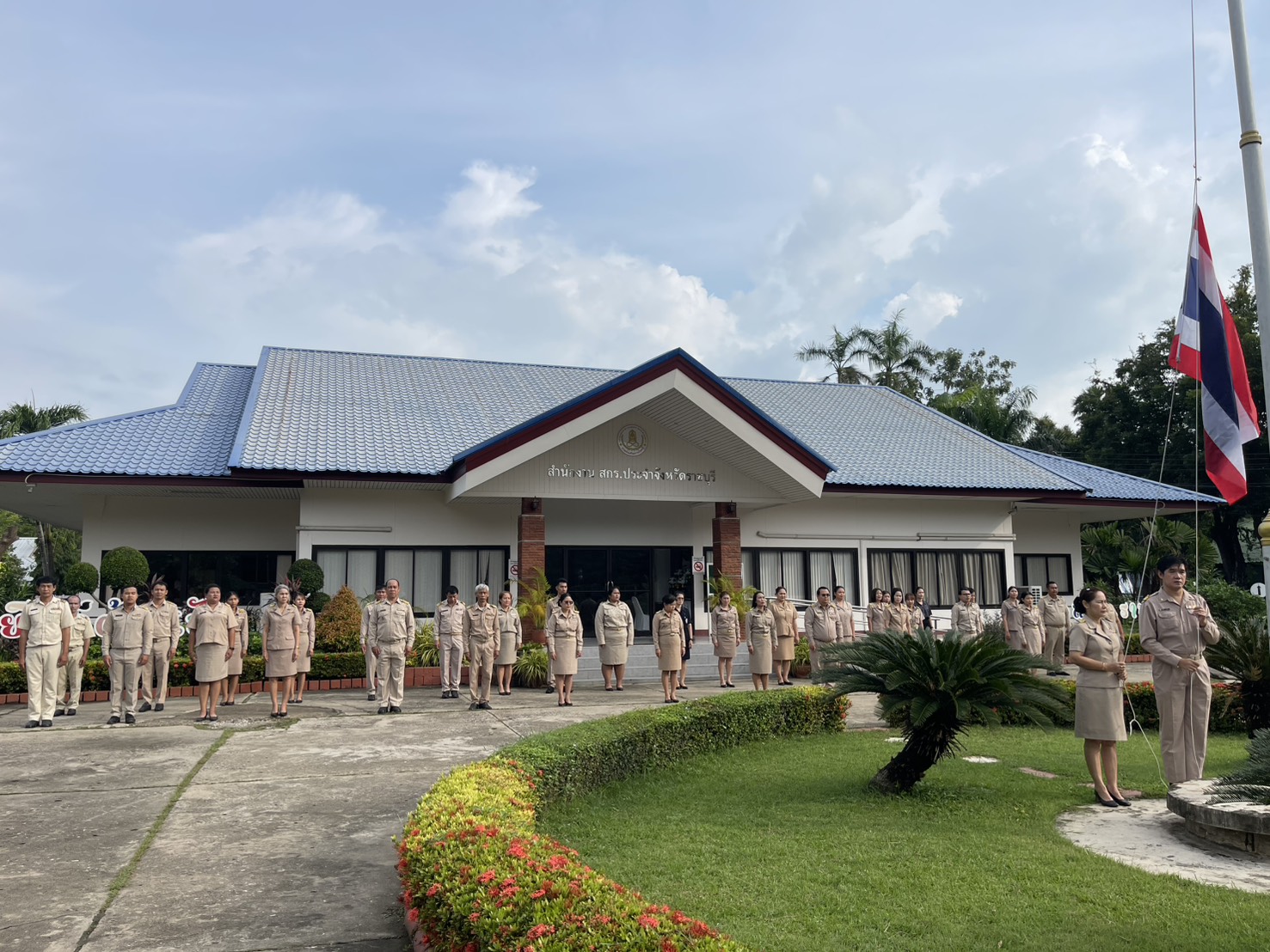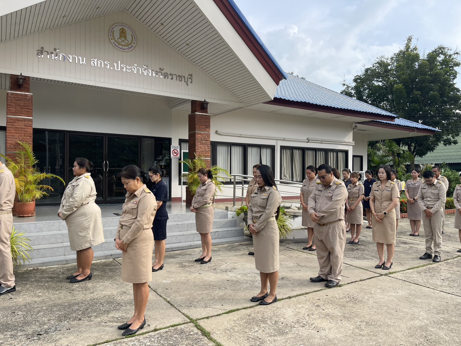 เช้าวันจันทร์ที่ ๑๐ พฤศจิกายน ๒๕๖๘ นางอัญชลี ปสันตา ผู้อำนวยการสำนักงานส่งเสริมการเรียนรู้ประจำจังหวัดราชบุรีนำข้าราชการและบุคลากรผู้ปฏิบัติงาน สำนักงาน สกร.ประจำจังหวัดราชบุรี และ สกร.ระดับอำเภอโพธาราม เข้าร่วมกิจกรรมเข้าแถวเคารพธงชาติ สวดมนต์ไหว้พระ (ทุกวันจันทร์) เพื่อสร้างจิตสำนึกของการเป็นข้าราชการที่ดี และส่งเสริมการแสดงออกถึงความจงรักภักดีต่อสถาบันชาติ ศาสนา พระมหากษัตริย์ ณ บริเวณหน้าเสาธง สำนักงานส่งเสริมการเรียนรู้ประจำจังหวัดราชบุรี